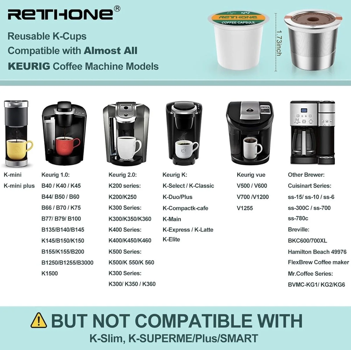 These reusable K-Cups are compatible with Keurig 1.0 and 2.0 coffee machines, including the following models: